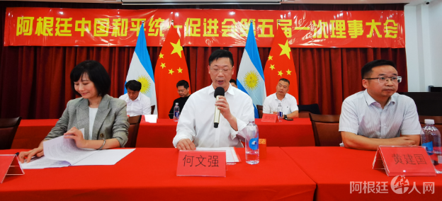 新任会长何文强发表了讲话。他表示,前任会长罗超西在任六年来,积极开拓工作思路,夯实工作基础,为阿根廷中国和平统一事业的发展和进步做出了积极贡献,是我们学习的好榜样。新一届理事会将在使馆领导下,紧密团结各侨团和广大侨胞,为实现中华民族伟大复兴做出应有贡献。