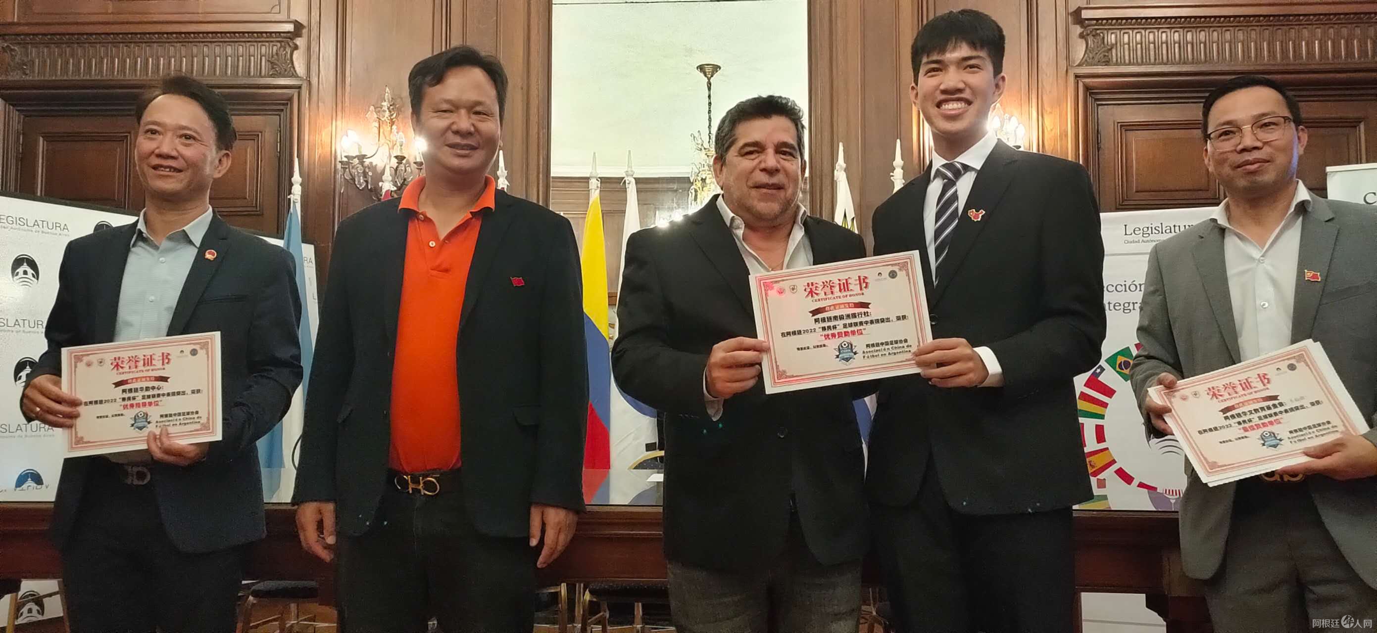 布市立法委员克劳迪奥·罗梅罗先生先后给阿根廷华助中心主任严祥兴颁发“优秀指导单位”证书,为阿根廷洪门协会会长尤震和铂烽一心慈善基金颁发“最佳赞助单位”证书。为南极洲旅行社刘家龙、笑眯眯工作室李朝铭、阿根廷弗洛伦西奥·瓦雷拉华商华会长李维光、阿根廷基尔梅斯华人超市商会秘书长吴睿、科连特斯华人商会代表程毅颁发“优秀赞助单位”证书。为阿根廷华人义工协会会长何雄明颁发“最佳贡献单位”指导,为阿根廷华文教育基金会会长刘芳勇颁发“最佳冠名单位”证书。