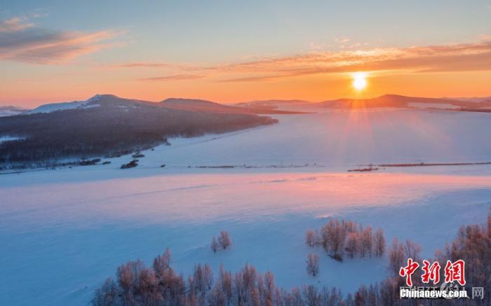 图为晚霞映射下的内蒙古大兴安岭如梦如幻。 李明 摄
