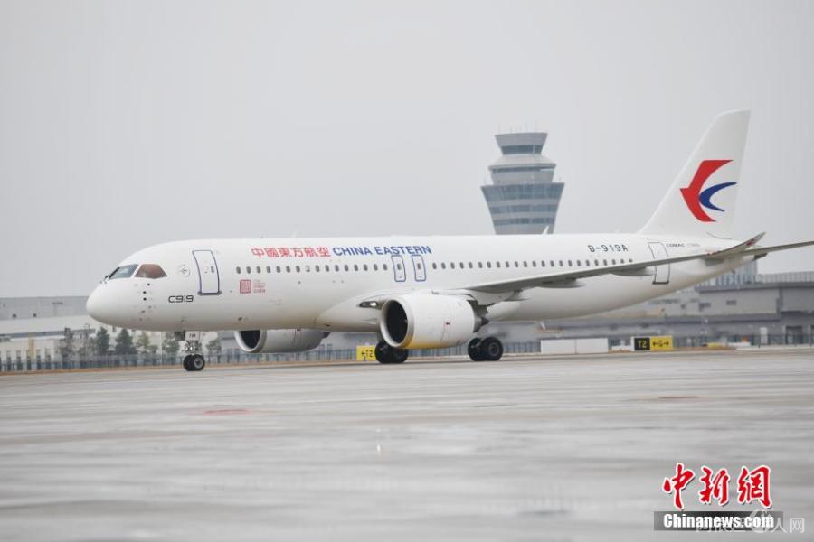 图为C919国产大飞机首次降落在成都天府国际机场。 张浪 摄