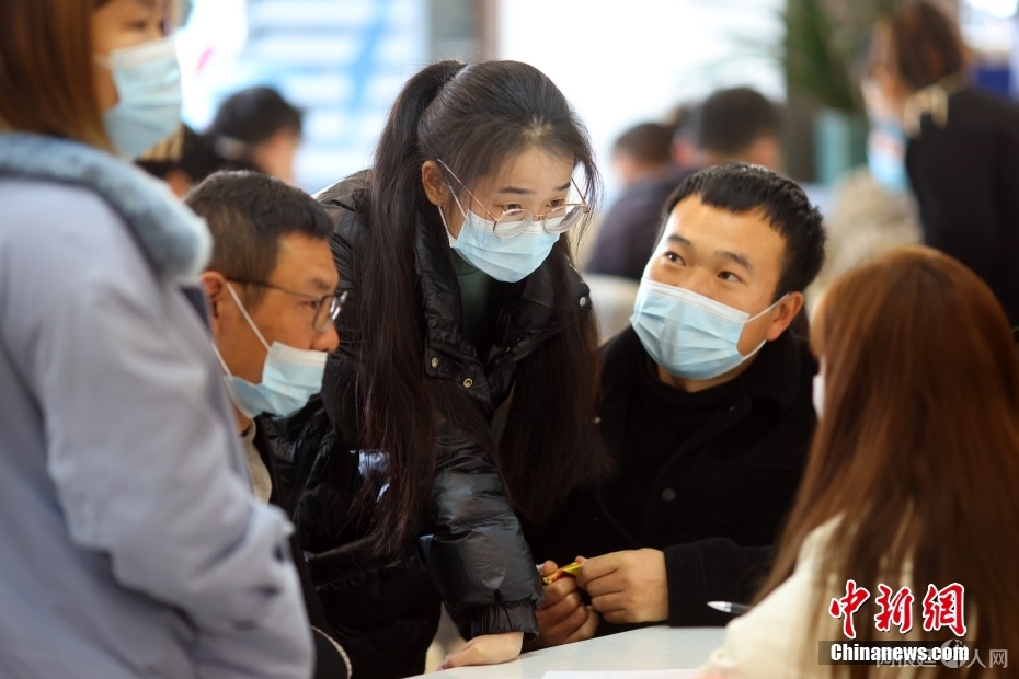1月31日,求职者在江苏省零工市场大厅内的企业招聘台前咨询。 中新社记者 泱波 摄