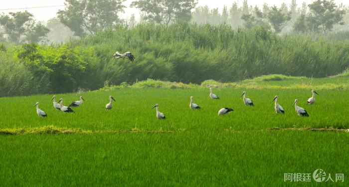 中新网2月7日电 (吴家驹)鱼塘连片,芦苇摇曳,鹳鸣声声……在水草丰茂的河北省唐山市丰南区黑沿子镇,被誉为“鸟类大熊猫”的东方白鹳,在这里定了居安了家。