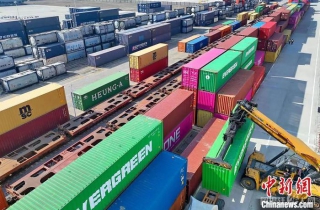 资料图。货运站正在繁忙作业。 许丛军 摄