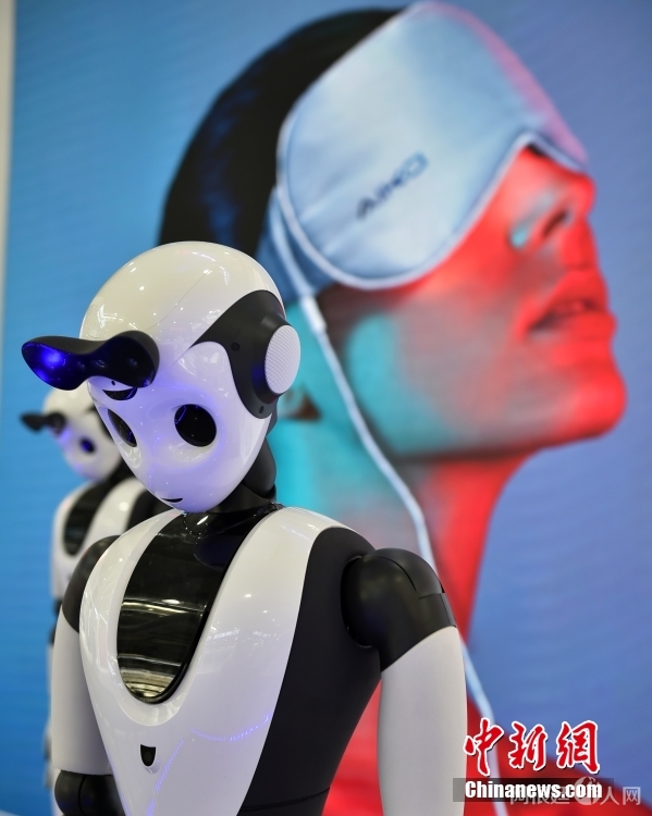 资料图:北京,在服贸会首钢园展区,电信、计算机和信息服务展厅里的舞蹈机器人。中新网记者 李骏 摄