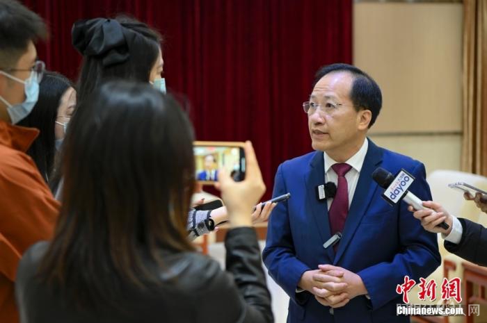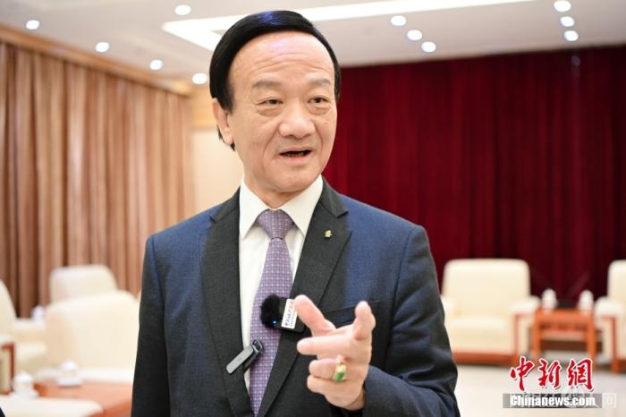图为中国侨联副主席、澳门创世企业集团有限公司董事长刘艺良接受记者采访。 中新社记者 陈骥旻 摄