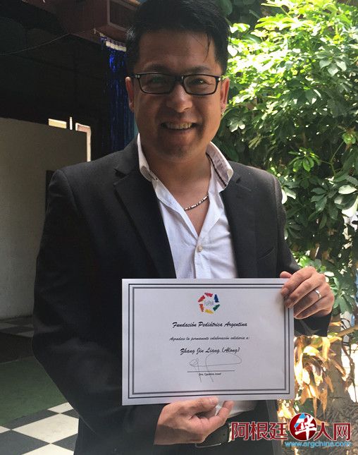 (阿根廷华人网12月21日讯 阿龙慈善团队/文、图)阿根廷儿童医疗基金会一年一度的表彰会今天下午在布市召开,华人歌手张金良获得表彰奖励。据了解,在阿根廷儿童医疗基金会年度表彰中,这是目前旅阿华人获得的唯一荣誉。