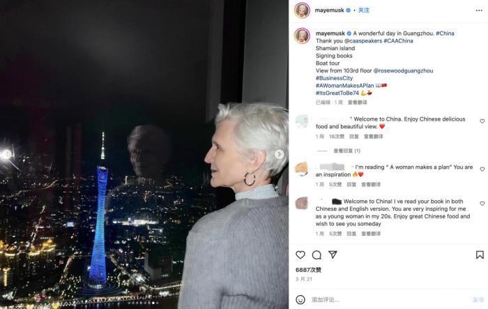 梅耶·马斯克游览广州。(图片来源:梅耶社交媒体截图)