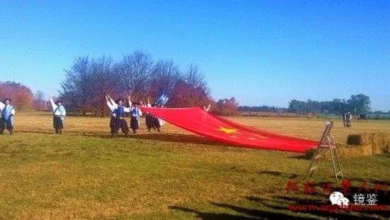 习大大访问阿根廷共和国庄园时,对方亮出一面巨大的五星红旗。