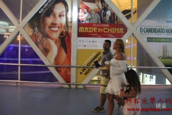 巴西里约热内卢某影院,观众从电影《中国制造》的宣传海报前走过。