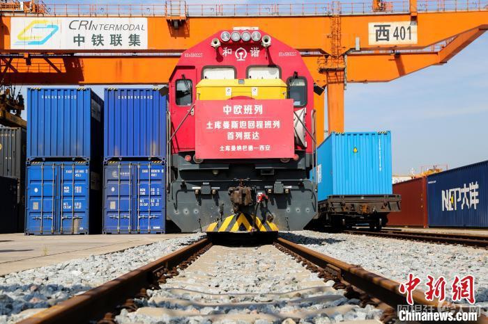 资料图:2022年8月31日,首趟中欧班列(土库曼巴希—西安)中药材专列抵达西安。中新社记者 张远 摄