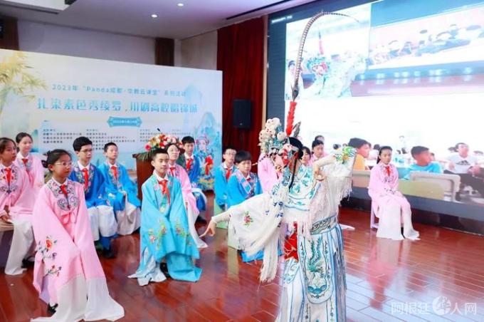 为更好传播中华文化,扩大海外华文教育的影响力,5月14日,“Panda成都·华教云课堂”系列活动——“扎染素色秀绫罗,川剧高腔唱锦城”在成都外国语学校附属小学举行。