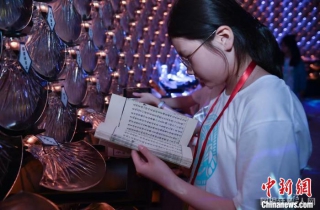交互式的沉浸观展是此次展览的一大亮点,触摸十二生肖纹样,就能聆听各民族的音乐交响,引得华裔青少年争先恐后体验。在参展过程中,来自蒙古国的学员注意到蒙文古籍、蒙古族的乐器也陈列在橱窗内。15岁的蒙古国华侨女孩张雨琪说,她最喜欢展览中彝族龙头月琴,因为“看起来帅气十足”。