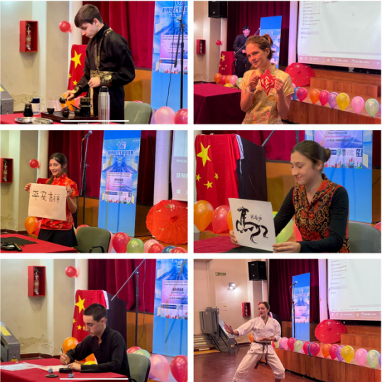最终,来自科尔多瓦孔子学院的李沁瑶(Cecilia Abril Villavicencio)摘得桂冠,将代表阿根廷赴中国参赛。她娓娓讲述了自己学习汉语的经历及对汉字的理解,并活力四射地演唱《张三的歌》,与台下评委、观众热情互动,赢得了阵阵掌声与喝彩。来自圣安德鲁斯中学的约瑟芬(Josefina Laperuta)和来自科尔多瓦孔子学院的顾佳佳(Mailén Valentina Cornejo)获得了此次大赛的二等奖。约瑟芬分享了自己的中国梦,表达了对登长城的期待与向往。她坚定了在追梦中文、不负韶华的道路上砥砺前行的决心,希望未来成长为中阿友好交往的使者。顾佳佳也为大家分享了自己的中国梦,即未来亲身前往中国体验博大精深的文化。她带来了让人眼前一亮扇子舞《万疆》,她的曼妙舞姿尽显对中国大好河山的赞美与向往。