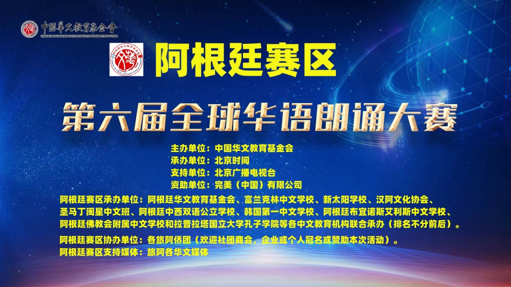 (阿根廷华人网5月30日讯Lisa)由中国华文教育基金会主办,阿根廷华文教育基金会联合富兰克林中文学校、新太阳中文学校、汉阿文化协会、中西文双语学校、布宜诺斯艾利斯中文学校、华夏中文学校、阿根廷韩国第一中文学校和圣马丁闽星中文学校等多家华文学校共同协办的“第六届全球华语朗诵大赛”阿根廷赛区完美收官,圆满落幕!