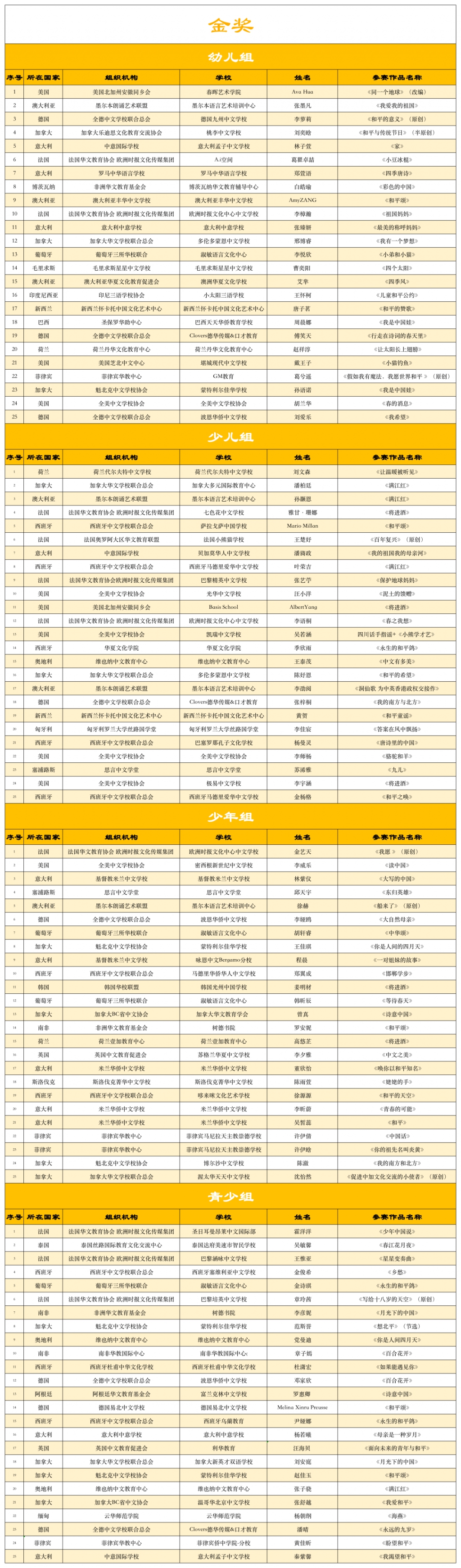 金奖 (少儿组)