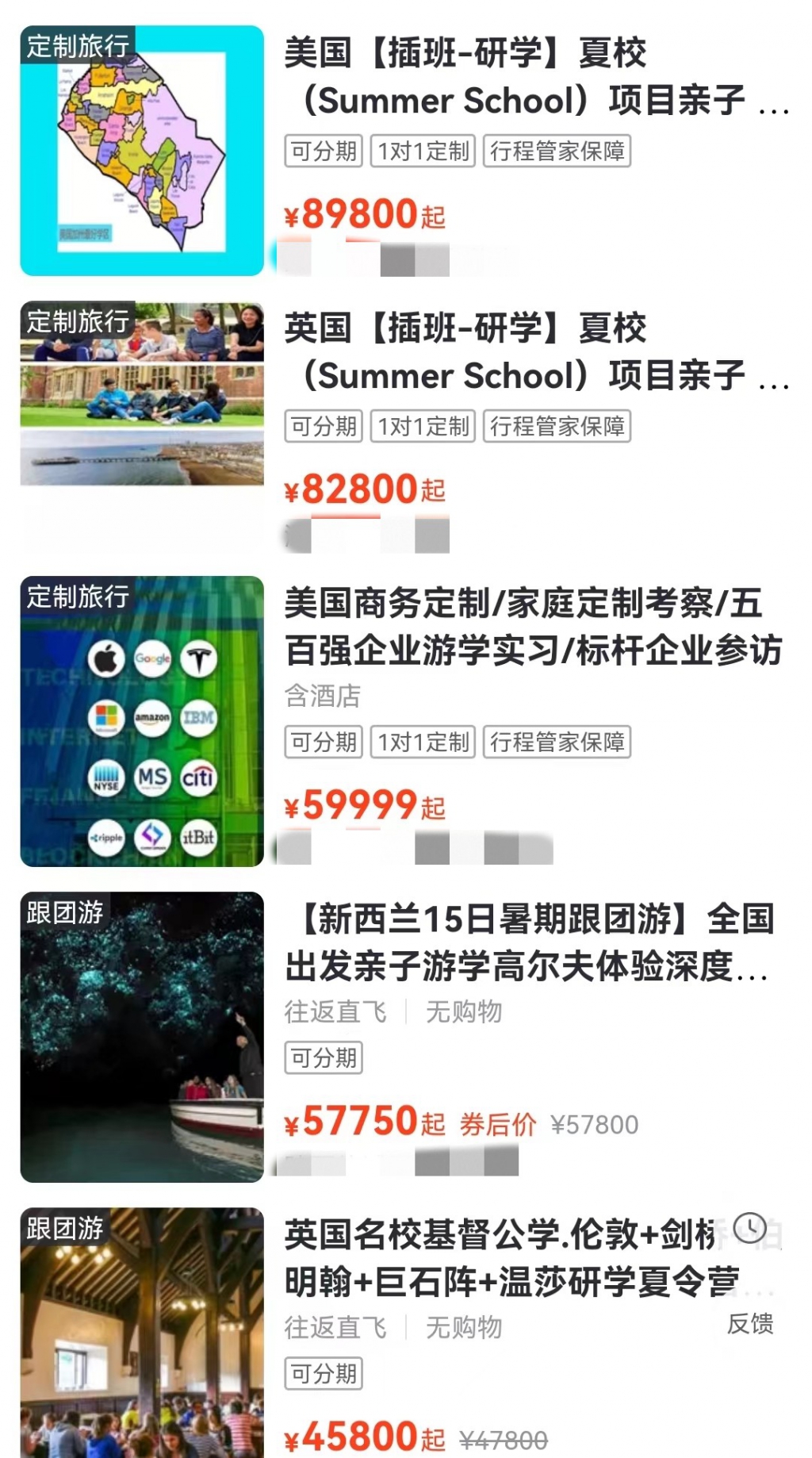 低至100多元的一日研学,高到近9万元的美国插班研学,打开某在线服务平台,各种研学项目应有尽有。