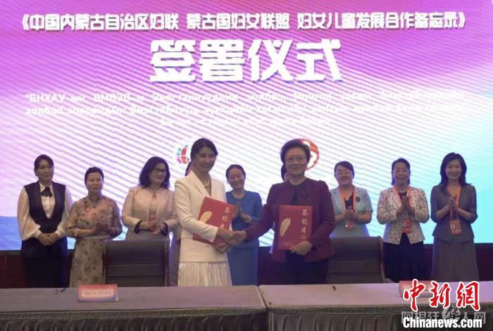 图为《中蒙妇女儿童合作备忘录》签署仪式 。(崔博群摄)