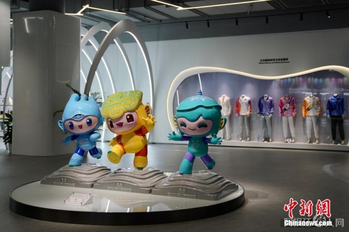 资料图:浙江杭州,杭州亚运会博物馆中摆放着杭州亚运吉祥物“江南忆”的雕塑。中新社记者 钱晨菲 摄