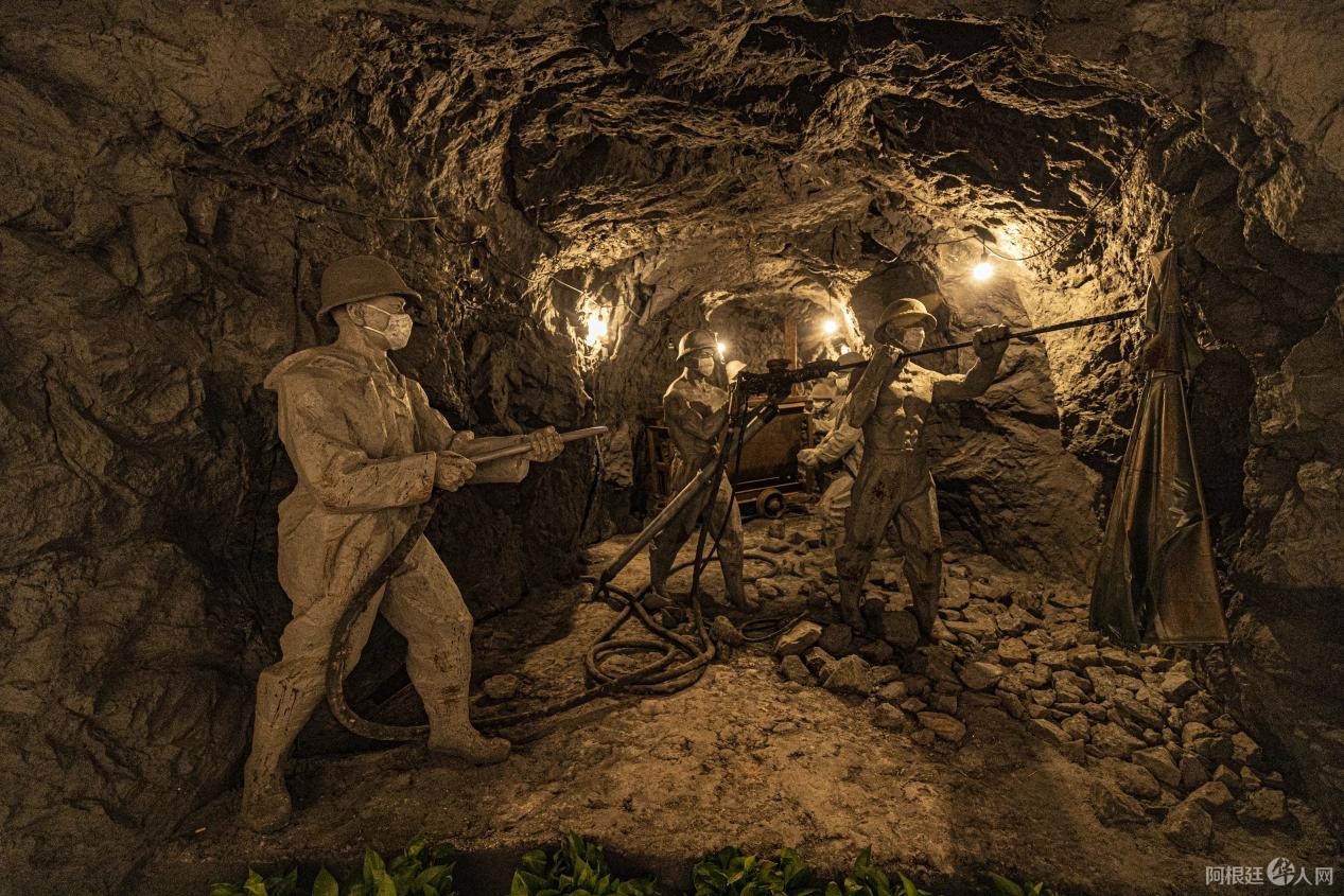 不远处的“七一一矿全国工业文化实践教学基地”,采用声光电技术、仿真假山等形式,再现了矿工们在恶劣环境下艰苦开采矿石的工作场景。