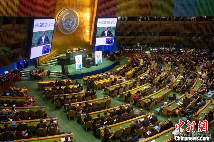 中新社联合国9月18日电 (记者 王帆 刘关关)作为第78届联合国大会高级别周的核心活动之一,联合国可持续发展目标峰会18日在纽约联合国总部拉开帷幕。当天,联大通过一项政治宣言,会员国承诺加速实现2030年可持续发展目标。
