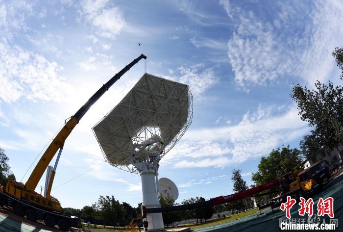 9月20日,中国牵头研制的国际大科学工程平方公里阵列射电望远镜(SKA)项目首台中频天线,在中国电科网络通信研究院举行吊装仪式。中新网记者 孙自法 摄