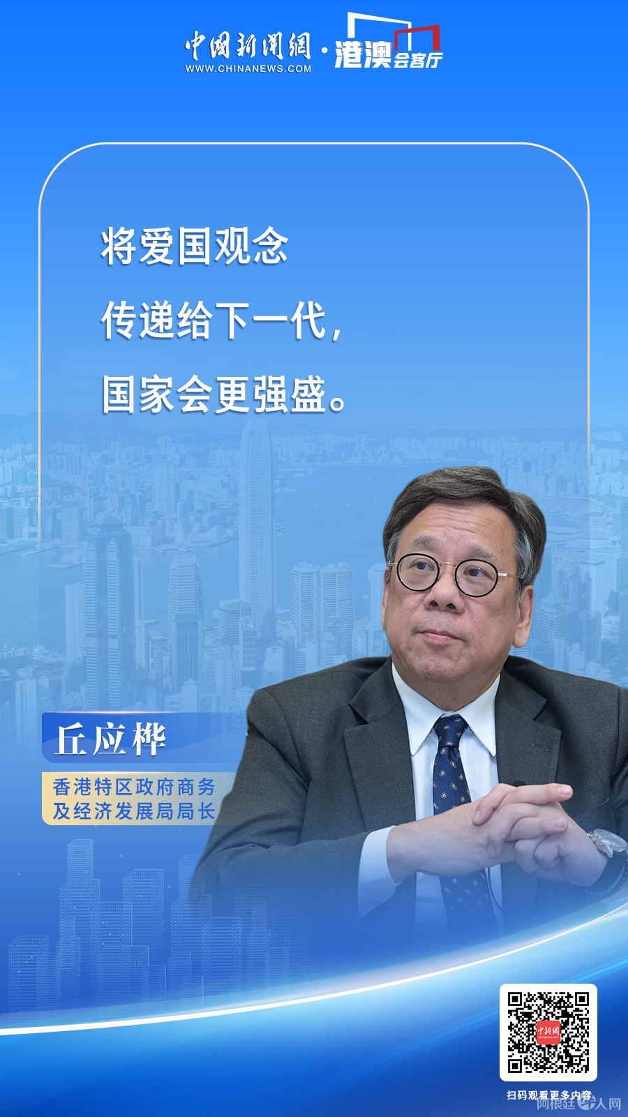 中新网香港10月18日电 (记者 魏华都 戴梦岚 范思忆 梁源 刘轩廷 罗嗣昱 陈永诺)丘应桦是爱国诗人、抗日英雄丘逢甲的嫡孙。在加入特区政府前,他曾在航空公司担任高层。他于2022年7月1日出任香港特区政府商务及经济发展局局长,负责促进外来投资等工作,今年他出访多个共建“一带一路”国家及新兴市场,为香港疫后经济发展寻求新机遇。