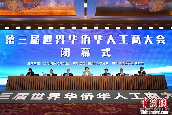 中新网北京10月31日电(徐文欣 刘洋)10月31日,第三届世界华侨华人工商大会闭幕式在北京举行,多位海外华商代表出席闭幕式。