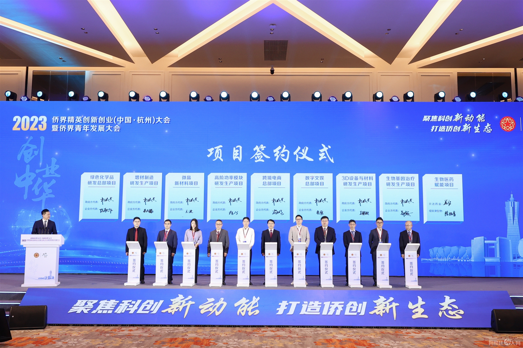 作为中国侨联“创业中华”品牌活动发端地,活动在杭州已连续举办12年,每年都会有一批批优秀项目落地杭州,扎根杭州。据悉,今年大会筹备期间征集到150余个项目,期间签约43个项目,投资金额达198.54亿元,开幕式现场上台签约9个项目,投资金额80亿元,行业涉及高端装备、智能物联、生物医药、绿色能源和新材料等领域。