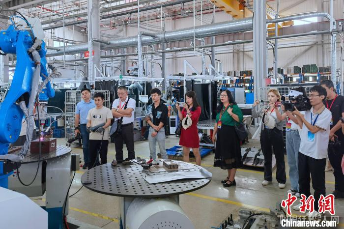 海外华文媒体代表参访漳州美肯科技有限公司一站式智能化生产车间。中新网记者 孙虹 摄