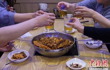 图为在首尔一家麻辣香锅店,韩国民众吃麻辣香锅。 中新社记者 曾鼐 摄