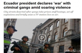 1月8日,厄瓜多尔总统诺沃亚宣布,全国将进入为期60天的紧急状态,并出动警察和武装部队控制扰乱公共秩序的行为,包括当地时间晚上11时至凌晨5时实行宵禁。诺沃亚9日又宣布,该国进入“国内武装冲突”状态。
