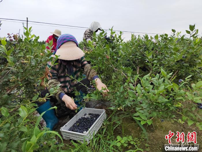 吉林靖宇农民在采收蓝莓。(资料图)靖宇相关部门供图
