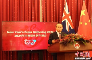 当地时间1月17日,中国驻澳大利亚大使肖千在使馆举行的中澳媒体新年酒会上致辞表示,2023年是中澳关系“交流、对话与改善之年”。中新社记者 顾时宏 摄