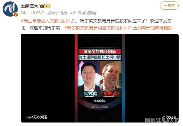 18日,哈尔滨文旅局长回应瑞士申请加入文旅比拼。 截图自微博。