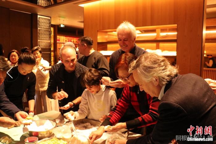 在活动现场,外国友人学习用毛笔书写“福”字,还体验了送春联、包饺子等特色年俗活动。来自法国的国际组织中国区负责人傅默然(Francois Morin)在华工作近30年。在活动中,他十分享受包饺子的过程,并用流利的中文表示:“中国就是我的家。”他还说:“春节已然临近,我们的每一天都应更加开心快乐。”