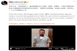 19日,梅西通过微博发布一条录制视频,再次回应中国香港行争议。