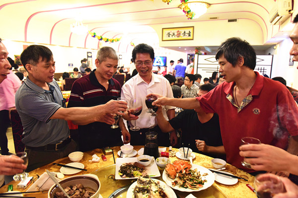 举杯同庆。