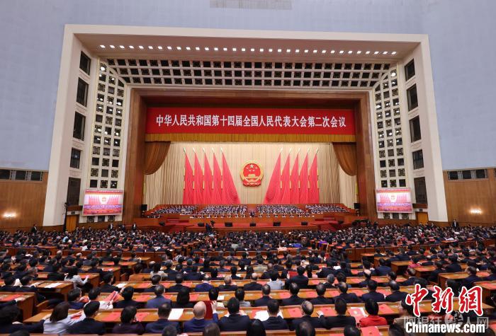 3月11日,十四届全国人大二次会议在北京人民大会堂举行闭幕会。 中新社记者 盛佳鹏 摄