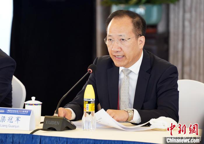 3月27日,博鳌亚洲论坛2024年年会·华商领袖与华人智库圆桌会议在海南博鳌举行。中华海外联谊会副会长、美东华人社团联合总会主席梁冠军出席会议。中新社记者 毛建军 摄