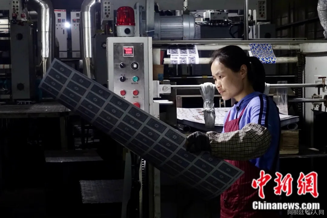 浙江武义“掼蛋”扑克牌生产线工人工作中。中新社记者 钱晨菲 摄
