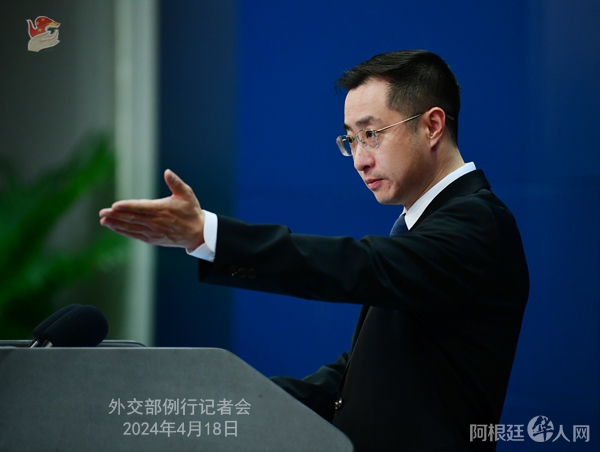 中新网北京4月18日电 (谢雁冰)中国外交部发言人林剑4月18日主持例行记者会。