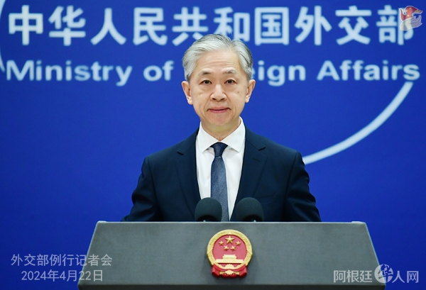中新网北京4月22日电 (记者 黄钰钦 梁晓辉)中国外交部发言人汪文斌4月22日主持例行记者会。