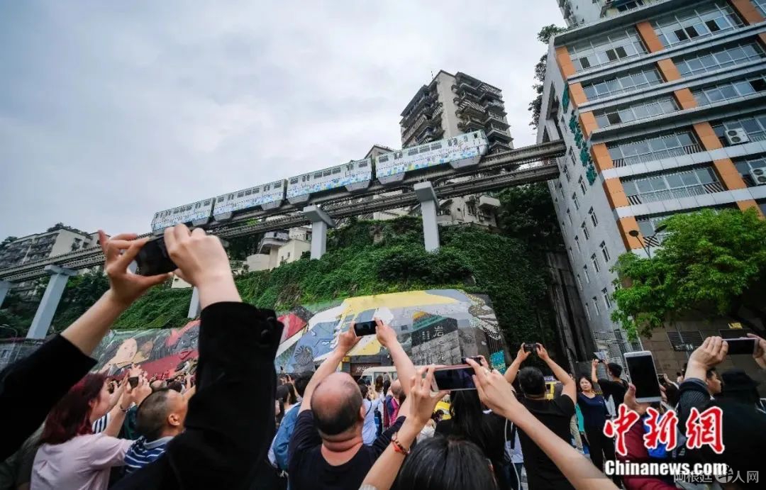 图为轨道交通李子坝站“穿楼而过”。中新社记者 何蓬磊 摄