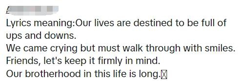 很多中国网友特意出了英文版歌词帮助国外网友理解歌曲本意,也有人总结了这首歌的意思帮大家理解。