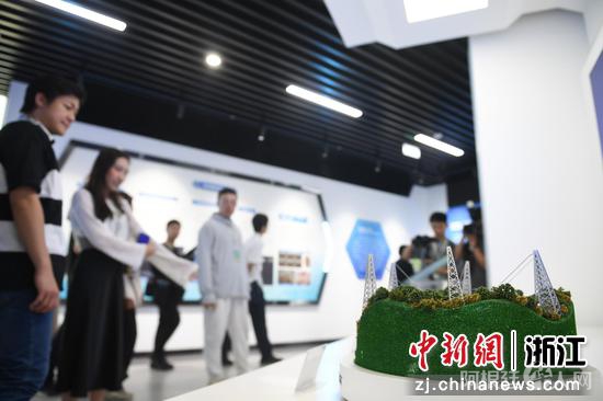 采风团成员参观杭州湾上虞经济开发区产业协同创新中心。中新社记者 王刚 摄