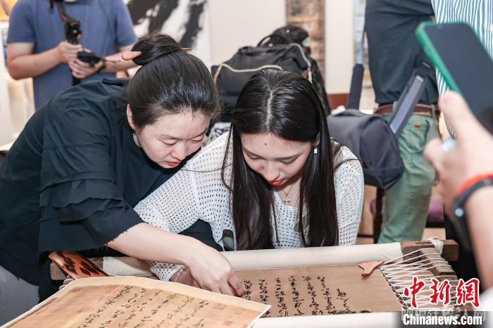 海外华文媒体代表了解杭绣作品。 主办方供图