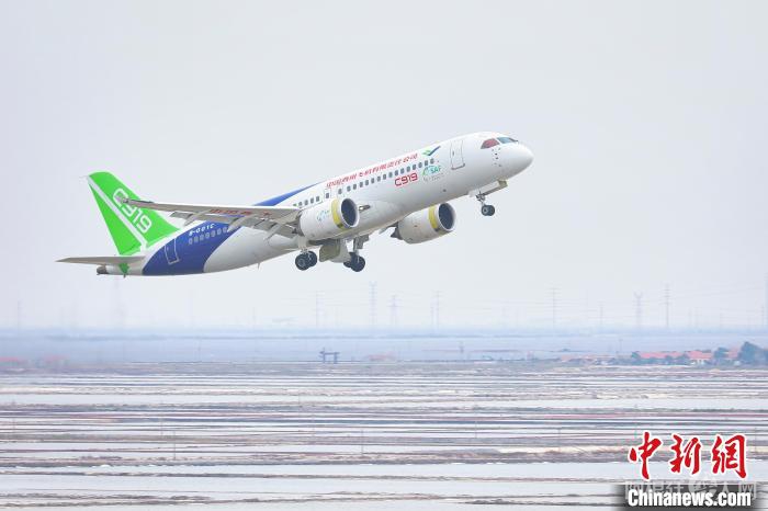 中新网北京6月5日电 (记者 孙自法)记者6月5日从中国商用飞机有限责任公司(中国商飞)获悉,中国商飞一架ARJ21支线飞机和一架C919大型客机,当天分别从上海浦东机场和山东东营机场起飞,经过1个多小时的飞行,圆满完成首次加注可持续航空燃料(SAF)演示飞行任务,展现出中国这两型国产商用飞机加注SAF后的良好飞行性能。