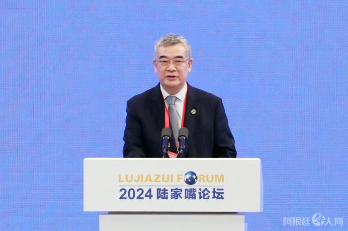 中国人民银行副行长、国家外汇管理局局长朱鹤新在2024陆家嘴论坛上发表演讲。图源:陆家嘴论坛官网