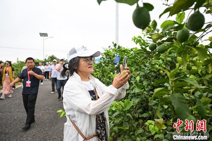 7月8日,海外华文媒体代表在重庆潼南柏梓镇小岭村柠檬基地参观。当日,“行走中国·2024海外华文媒体川渝行”参访团一行走进重庆市潼南区,实地了解当地柠檬产业发展。据悉,重庆潼南是世界三大柠檬产地之一,柠檬种植面积达32万亩,柠檬鲜果及柠檬产品远销俄罗斯、新加坡、东南亚等30多个国家和地区。近年来,“潼南柠檬”从技术研发、种苗培育、标准化种植、精深加工等为一体的柠檬全产业链在当地日臻完善。中新社记者 何蓬磊 摄