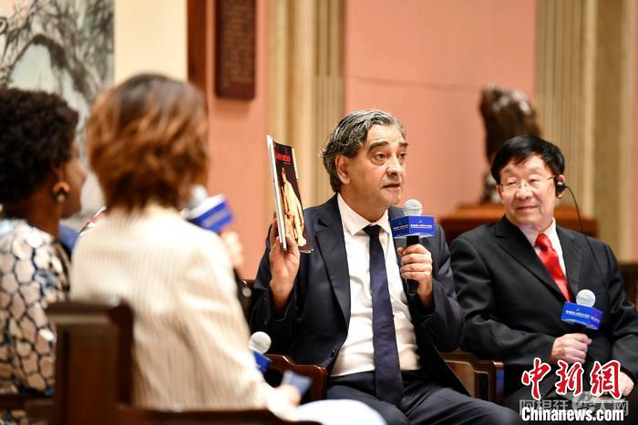 7月10日,为期两天的第十届尼山世界文明论坛在山东曲阜开幕。图为与会嘉宾围绕大会主题进行交流探讨。沙见龙 摄